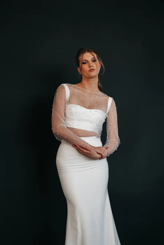 V2480WZ - Waterfall Tulle Veil with Pearl, Sequins and Opaque Seed Beads