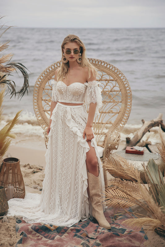 Cosette Crystal and Lace Garter Set Ivory C18RG-C02RG