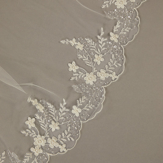 V2499SF - Lace Opague Ivory Beads Veil