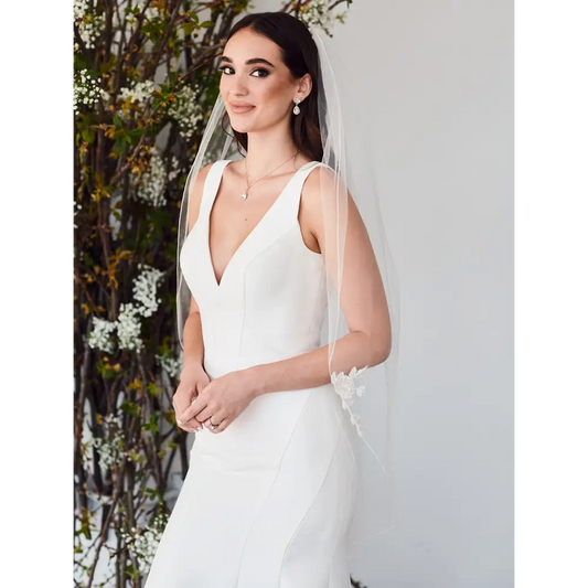 V2481SF - Opaque Ivory Bead Edge Tulle Veil