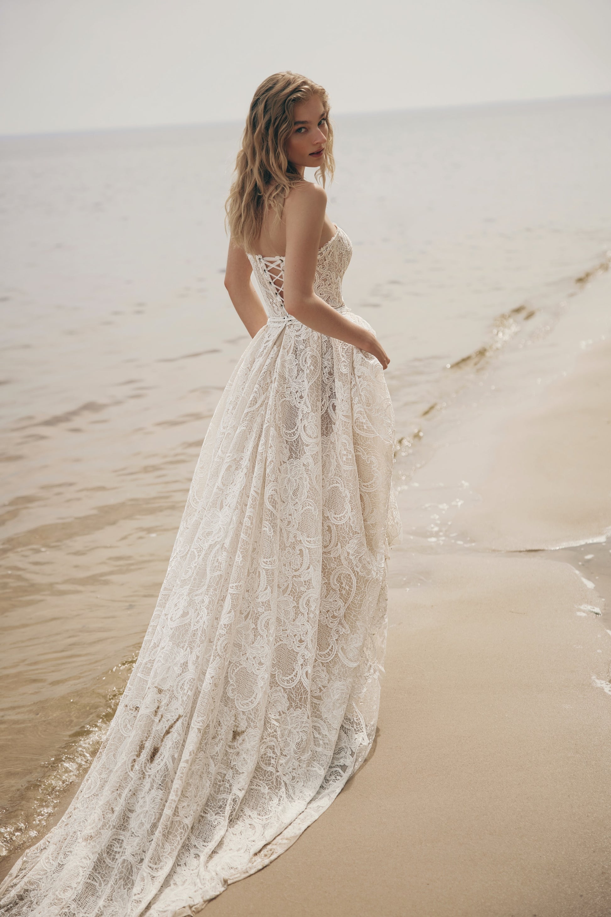 Bridal sizing runs on average 2-3 sizes SMALLER than standard street sizing. Please measure and view the size chart above to ensure that you are getting the most accurate size. If your bust, waist, and hip are measuring at different sizes, we recommend to always size up and use alterations to achieve a perfect fit. For measuring, please measure around the fullest part of your bust (the apex of your bust), your waist, and the fullest part of your hips. Size chart is highlighted above the "Add to Cart" button for reference.