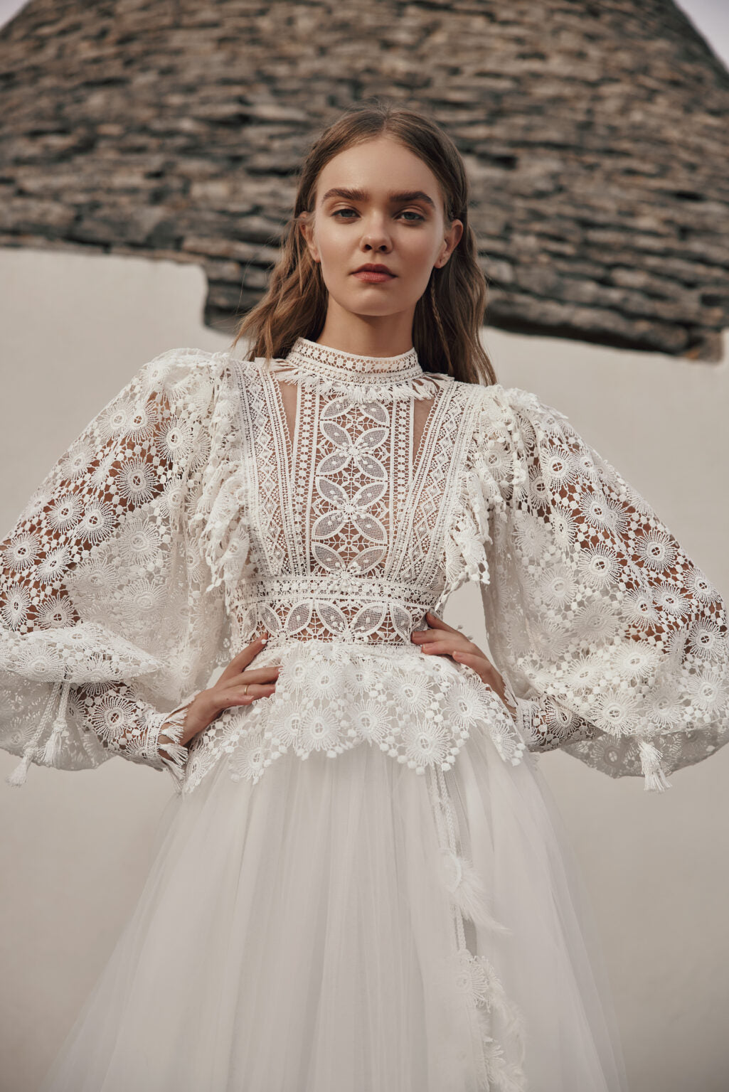 The Heart by Ariamo Boho wedding dress showcases a unique lace design that captures the essence of bohemian charm. Its light, flowy silhouette combined with intricate lace details creates a romantic and natural look, ensuring comfort all day long. Ideal for brides seeking to express their individuality with timeless elegance on their special day.
