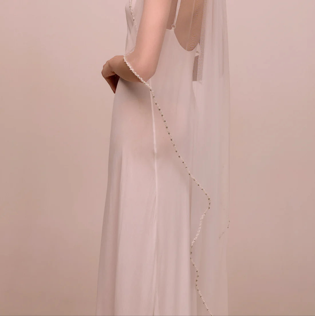 Meet VS26-04, the modern classic every bride deserves. Crafted from our premium Heirloom tulle®, this veil showcases sculptural simplicity with a soft sheer drape and delicate pearl beading hand-stitched along the edge. Its refined design transitions seamlessly from minimal to embellished gowns, making it the ultimate versatile companion for your bridal vision. The understated elegance speaks volumes, proving that true polish comes from thoughtful design rather than excess. Choose VS26-04 for a veil that feels both contemporary and timelessly beautiful.